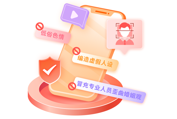 针对“编造虚假人设”“低俗色情”“冒充专业人员歪曲婚姻观”“刻意营造冲突氛围”“发布违规引流信息”等直播乱象,加强人工审核及巡查频次,同时通过智能AI对直播内容进行识别,一旦发现违规关键词或行为模式,爱聊将及时采取删除、屏蔽、提醒等有效措施,并对违法违规用户进行严惩。